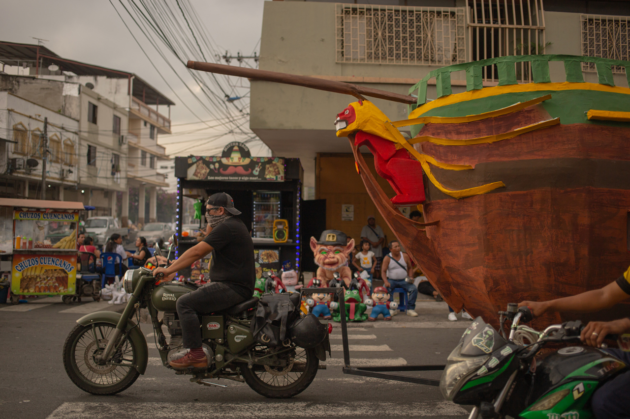 This mestizo ritual resists linear narratives, offering instead an Andean zig-zag perspective on renewal through repetition. The crafting of these effigies embodies Guayaquil’s vibrant popular culture and capitalist-driven desires, while paradoxically creating space for (political) protest. In a context where sustaining artistic practices remains precarious, this tradition has also given rise to informal economies.